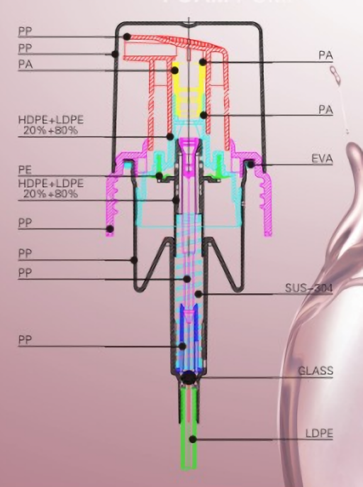 Máy bơm bọt có thể được áp dụng để làm sạch da mỹ phẩm và làm sạch hàng ngày, như Kem dưỡng da tay & cơ thể, Nước rửa bát, Xà phòng lỏng, Dầu gội đầu, v.v.
